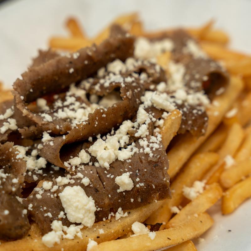 Shoe-string fries topped with greek spices, feta, and gyro meat